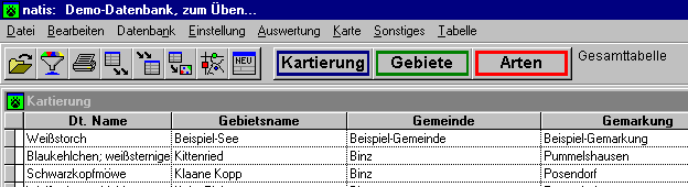 nnatis wird über sein Menü und eine abschaltbare Symbolleiste gesteuert. Unterhalb beider Steuerelemente ist ein Ausschnitt einer Tabelle zu sehen.